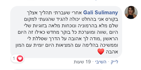 בימים הסמוכים לבקשתי הדרמטית, קפץ בפייסבוק הקורס של דן ומיטל. נרשמתי, ומשם הכל קרה מהר".